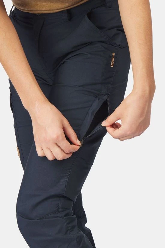 - De Karla Lite Curved Broek van Fjällräven is gemaakt van licht, plooibaar G-1000 Lite Eco Stretch dat weerbestendig is en genoeg ruimte biedt voor het comfortabel verlengen van je pas.